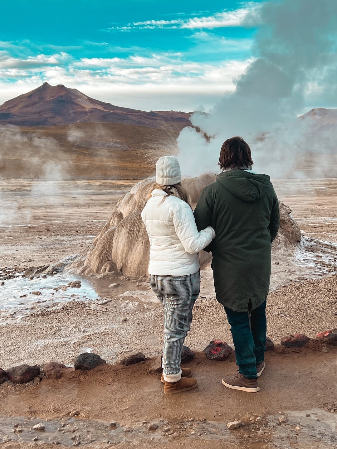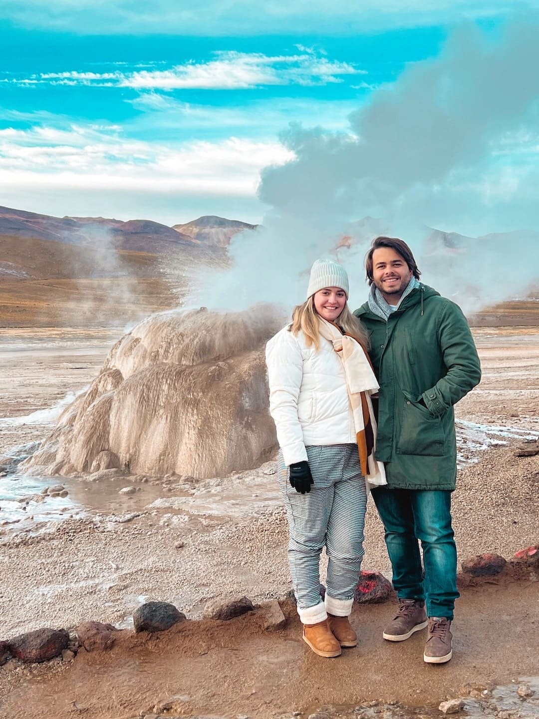 Prepare-se para se conectar com a natureza em seu estado mais puro em um dos cenários mais impressionantes do Deserto do Atacama. Ao amanhecer, os Geysers del Tatio oferecem um espetáculo geotérmico único, com colunas de vapor e água fervente que se elevam majestosas contra o céu, criando um visual mágico e inesquecível.